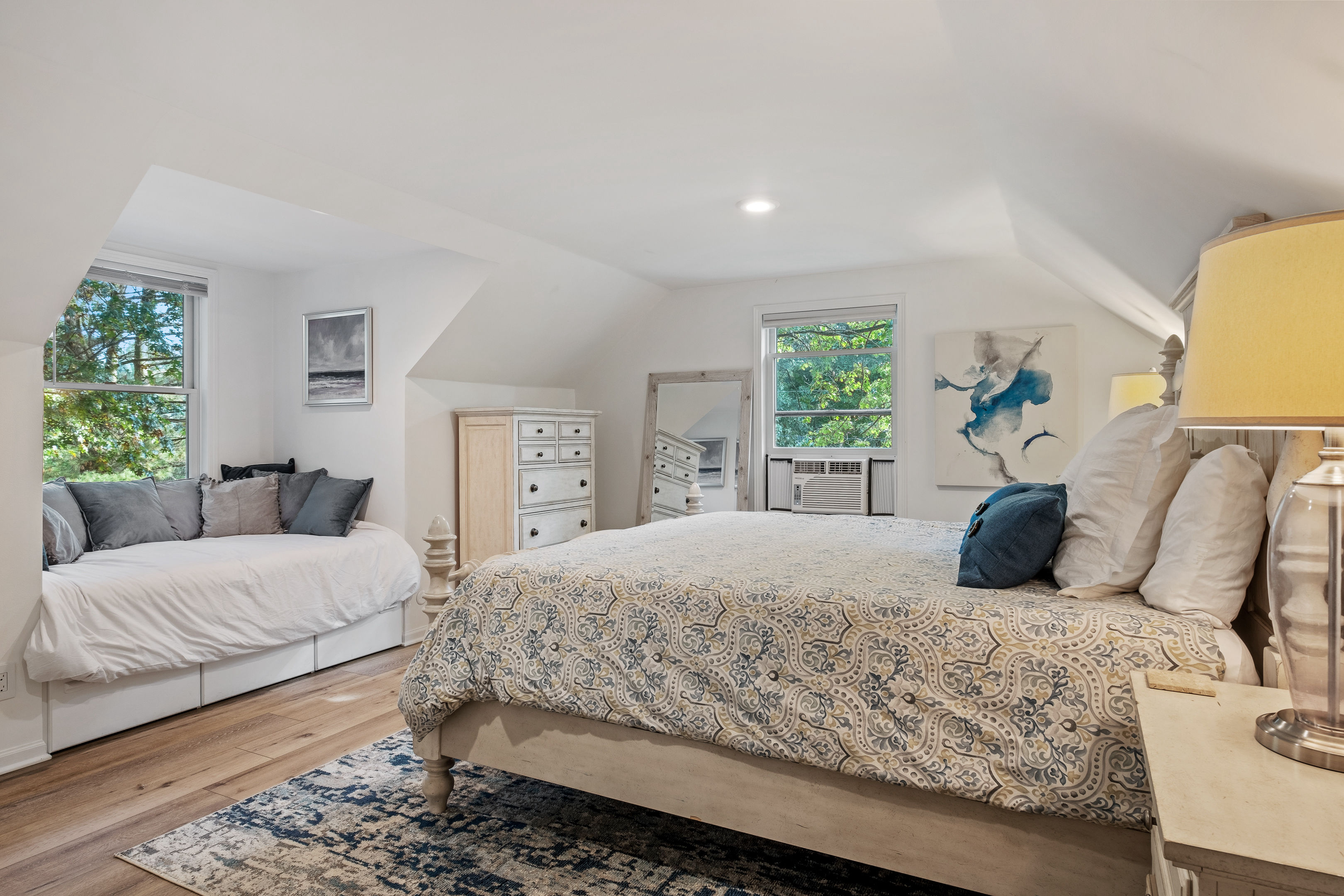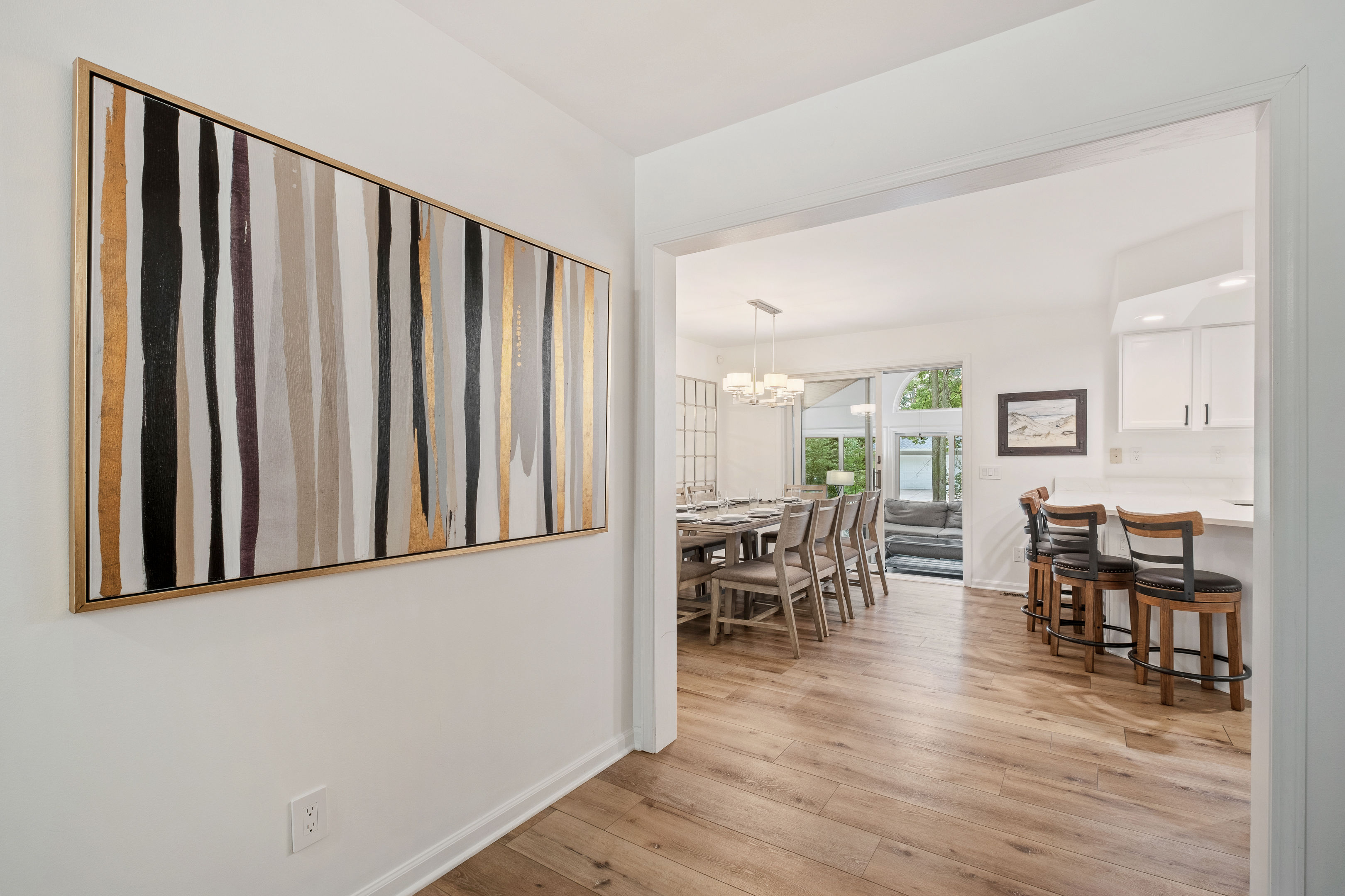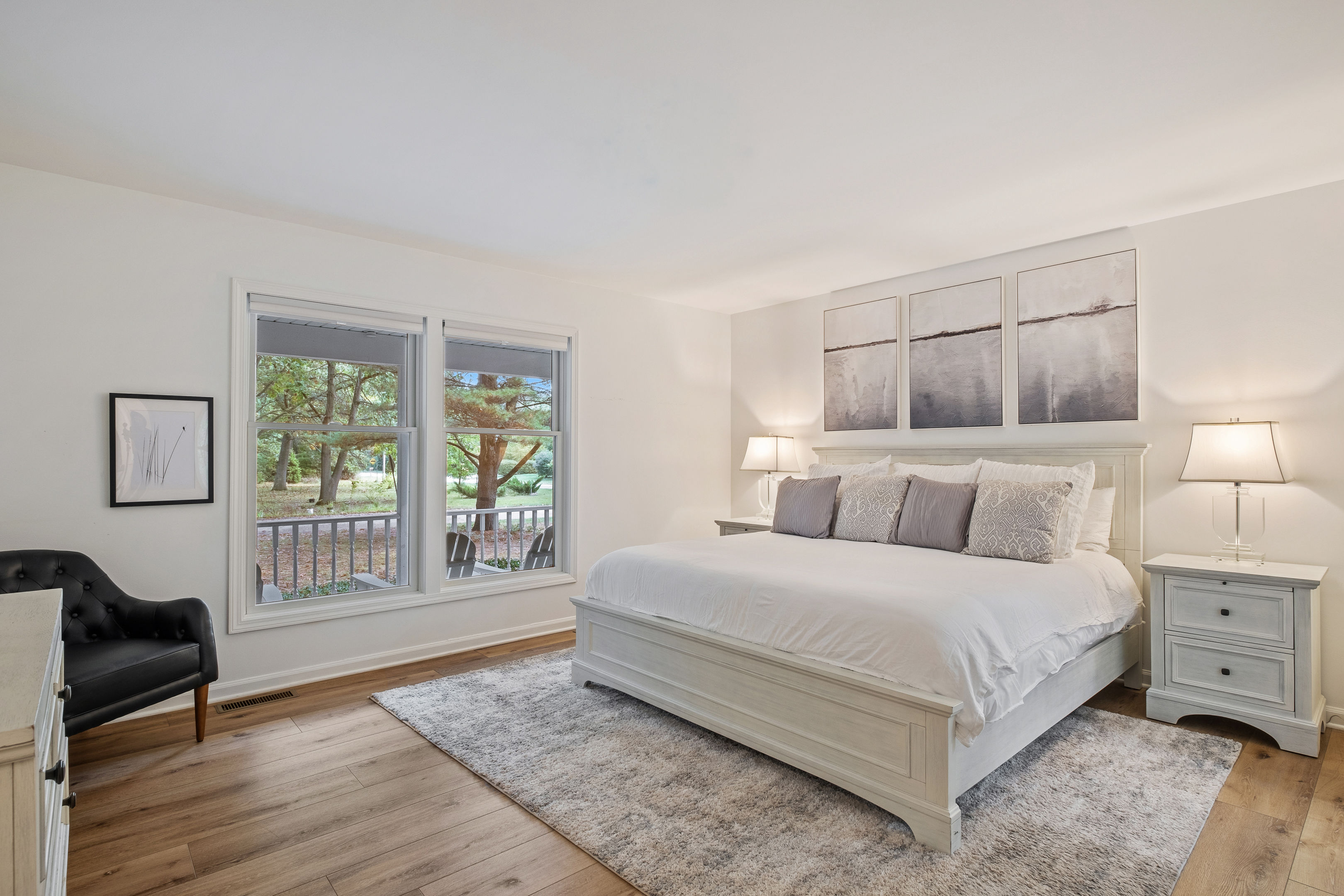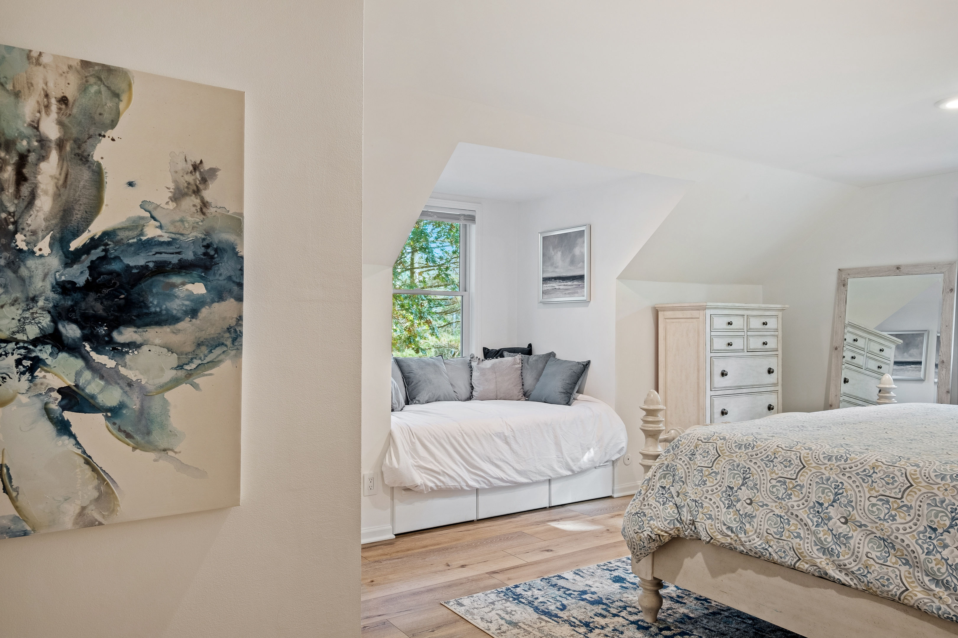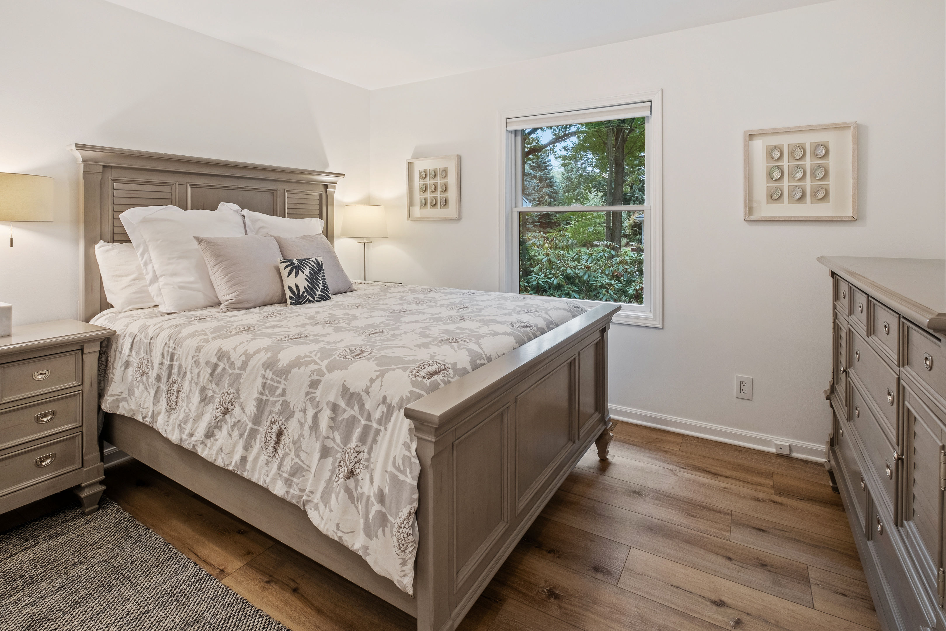 Welcome to your home away from home here in Saugatuck! The first thing you'll notice is how sparkling clean the house is. That's because we partner the absolute best cleaning partners in the biz. Next you'll be amazed how much bigger the home is than it looks in the pictures. The Main Floor is where the adults will spend most of their time, between the fully stocked kitchen, sitting area with smart TV, or my personal favorite the Four Seasons room with windows on three sides. There's also the king master suite and a queen bedroom on the Main Floor, easy for anyone who doesn't do well with stairs. Additional highlights: ~Seating for fifteen between the dining table and kitchen counter ~Large front porch w/ Adirondack chairs for sipping coffee in the morning ~Two car garage, driveway parking, basketball hoop ~Outdoor games (Bocce Ball, Corn Hole, Croquet, Horse Shoes, Whiffle Ball, Frisbee) ~Beach gear, including chairs, towels, and beach toys ~Patio area in backyard w/ couches and fire pit* ~Living room w/ wood burning fireplace*, 55" TV, and board games ~BBQ grill ~Fully stocked kitchen, including all the cooking utensils you will need, coffee station with drip and Keurig ~Half bath ~Laundry room ~Four Season Sun Room directly off the kitchen that looks out into beautiful wooded and landscaped yard. Sadly, the floor to ceiling windows can't be opened for the safety of our guests. Additionally, we've had too many noise complaints stemming from how well sound travels from this room with the windows open. ~Master bedroom w/ Memory Foam King Bed, real down pillows, down duvet, walk-in closet and en-suite full bathroom ~Second bedroom w/ Memory Foam Queen Bed, real down pillows, down duvet ★”Beds are so comfortable.” - Super Guest If you're tired or want to get some work done, head upstairs where you'll find the third and fourth bedrooms as well as a quiet office area. ~Office and sitting area w/42" Smart TV ~Third bedroom w/memory foam king bed, down alternative pillows and duvet, and additional smaller day bed, great to relax during the day or for children to sleep ~Fourth bedroom with two memory foam king beds, real down pillow and duvets, and a crib for the littlest ones ~Full bathroom If you're looking to play, head downstairs where you'll find activities that will keep your kids from ever having reason to say "I'm bored". This is also where the fifth bedroom is located. ~Game room with shuffleboard, foosball, and more ~Children's play area with toys, pretend play features, and lots of places to hide ~Sofa and 65" Smart TV ~Wet bar ~Bedroom with two queen memory foam beds with real down pillow and duvets ~Full bathroom w/tub (Note: please do not use the jets! They are broken.)