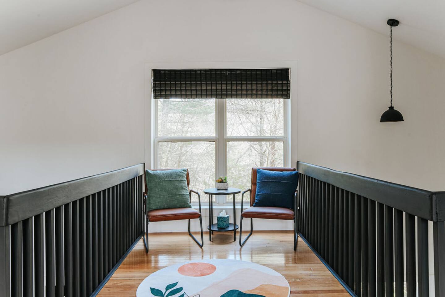 Welcome to The Nest by Stay With Branch! Step into this open design 1BR, 1BA cabin on 26 wooded acres. Just an easy 7-minute drive from the tranquil mountain town of Berkeley Springs, WV - you will be close to everything, yet still away from it all! ✔ Lofted Queen Bedroom w/ensuite Soaking Tub ✔ Couples Card Games to Kindle That Old (Or New) Flame ✔ Fully stocked kitchen ✔ Office ✔ Deck w/Hot Tub, cozy seating & treetop views ✔ Smart TV ✔ High-MBPS Wi-Fi ✔ Trails, Pond, and Stream on Property